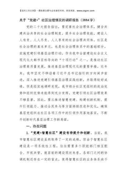 / 关于“党建+”社区治理情况的调研报告