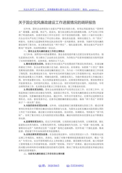 / 关于国企党风廉政建设工作进展情况的调研报告