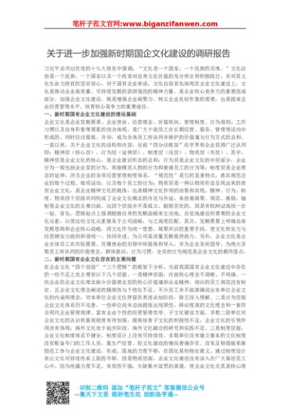 / 关于进一步加强新时期国企文化建设的调研报告