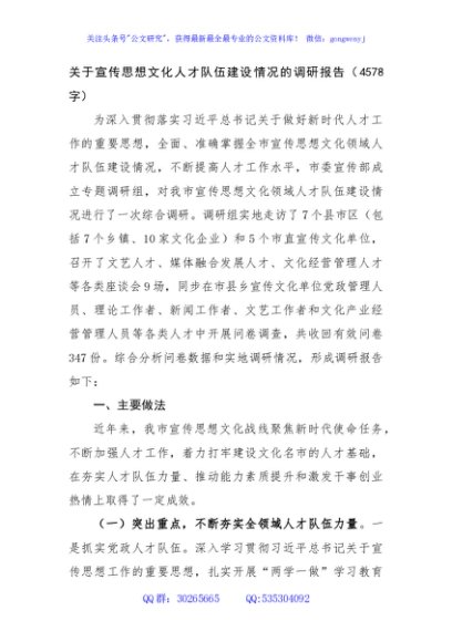 / 宣传思想文化人才队伍建设情况的调研报告