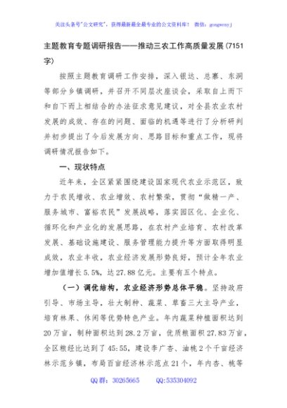 / 主题教育专题调研报告——推动三农工作高质量发展