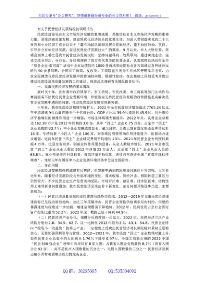 / 市关于民营经济发展情况的调研报告