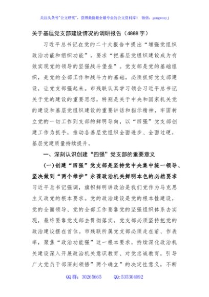 / 关于基层党支部建设情况的调研报告