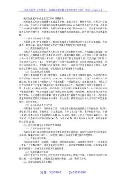 / 关于加强老干部信息宣传工作的调研报告