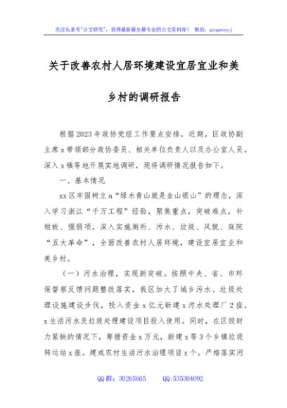 / 关于改善农村人居环境建设宜居宜业和美乡村的调研报告