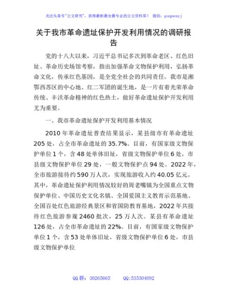 / 我市革命遗址保护开发利用情况的调研报告
