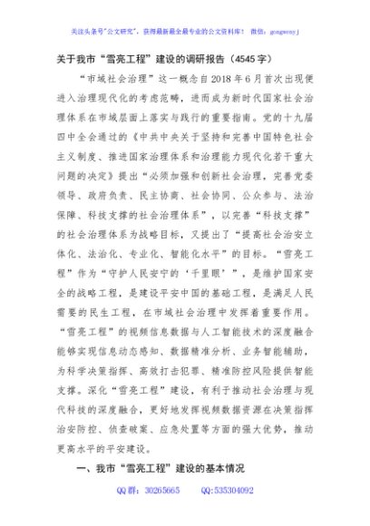 / 关于我市“雪亮工程”建设的调研报告