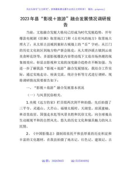 / 2023年县“影视+旅游”融合发展情况调研报告