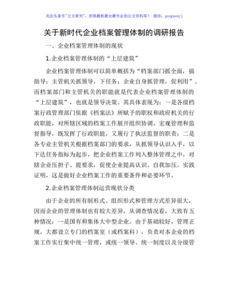 / 新时代企业档案管理体制的调研报告(调研报告参考)