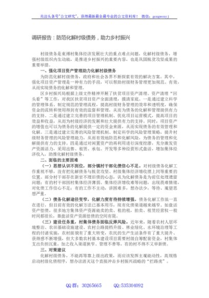 / 调研报告:防范化解村级债务,助力乡村振兴