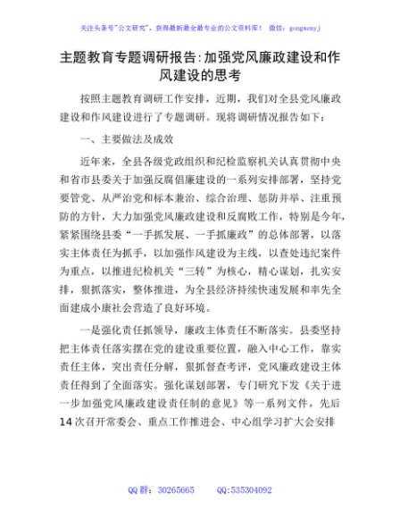 / 调研报告:加强党风廉政建设和作风建设的思考