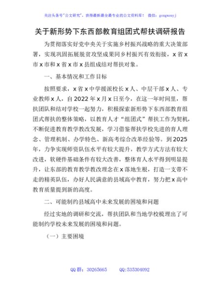 / 新形势下东西部教育组团式帮扶调研报告(调研报告参考)
