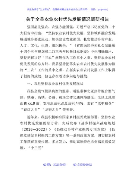 / 全县农业农村优先发展情况调研报告