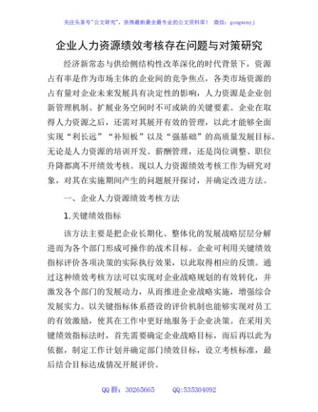 / 企业人力资源绩效考核存在问题与对策研究(公司调研报告参考)