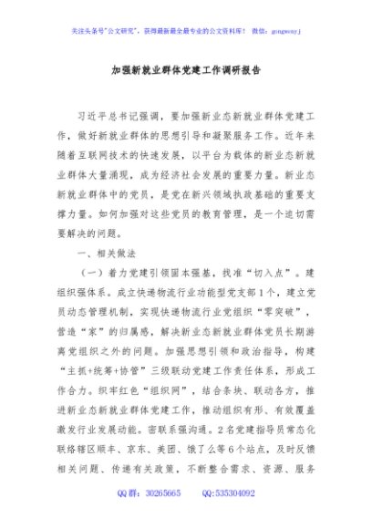 / 加强新就业群体党建工作调研报告