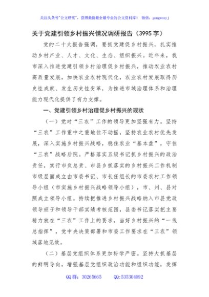 / 关于党建引领乡村振兴情况调研报告