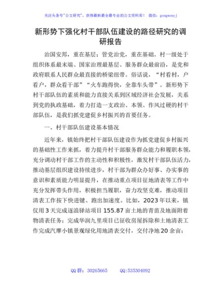 / 新形势下强化村干部队伍建设的路径研究的调研报告