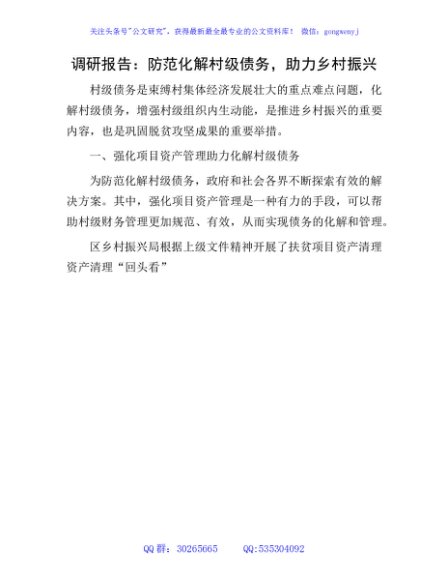 / 调研报告:防范化解村级债务,助力乡村振兴