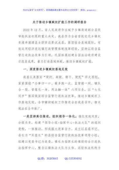 / 关于推动乡镇赋权扩能工作的调研报告