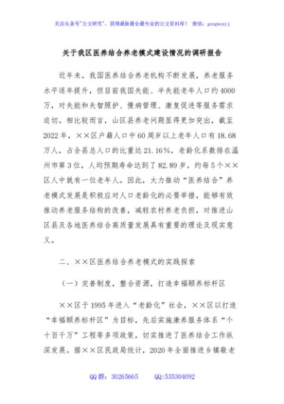 / 关于我区医养结合养老模式建设情况的调研报告