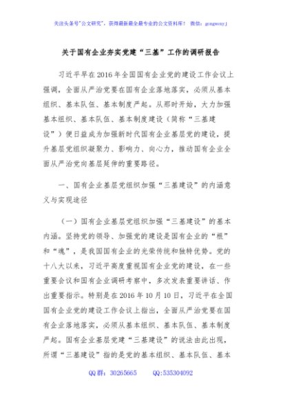/ 关于国有企业夯实党建“三基”工作的调研报告