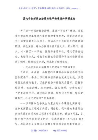 / 县关于创新社会治理推进平安建设的调研报告