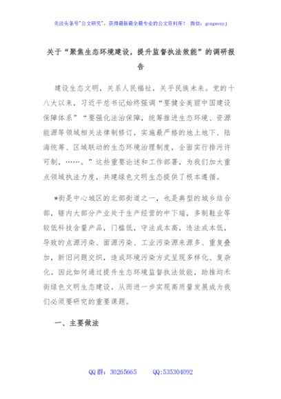 / 关于“聚焦生态环境建设,提升监督执法效能”的调研报告