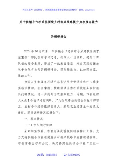 / 关于供销合作社系统围绕乡村振兴战略提升为农服务能力的调研报告