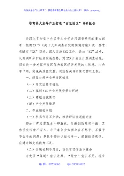 培育壮大主导产业打造“百亿园区”调研报告