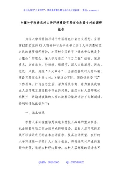 / 乡镇关于改善农村人居环境建设宜居宜业和美乡村的调研报告
