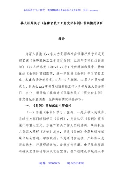 / 县人社局关于《保障农民工工资支付条例》落实情况调研报告
