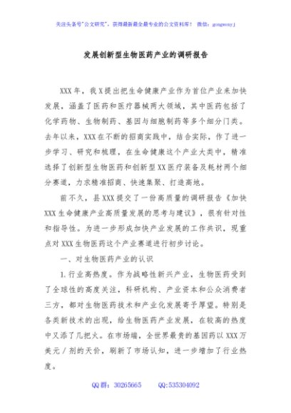 / 发展创新型生物医药产业的调研报告