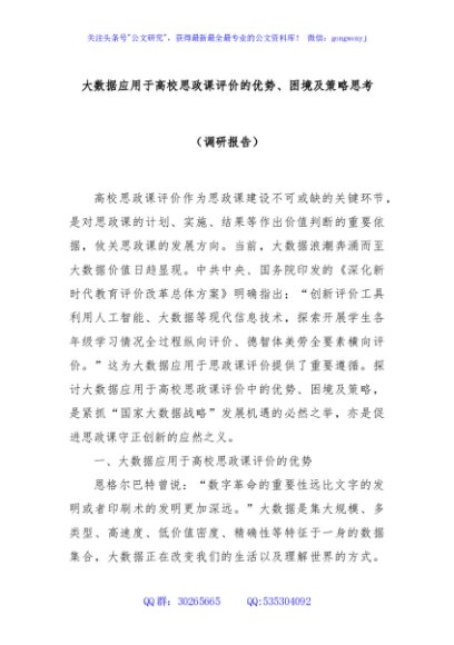 / 大数据应用于高校思政课评价的优势、困境及策略思考(调研报告)