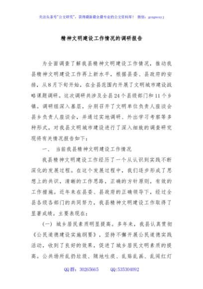 / 精神文明建设工作情况的调研报告