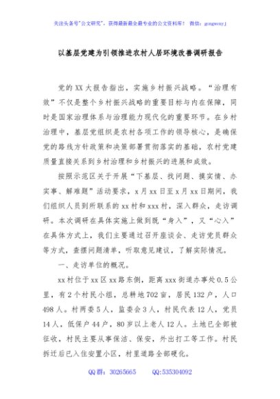 / 以基层党建为引领推进农村人居环境改善调研报告