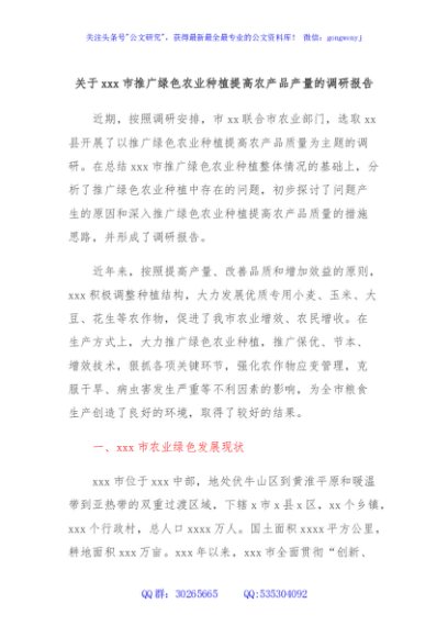 / 关于xxx市推广绿色农业种植提高农产品产量的调研报告