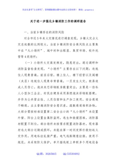 / 关于进一步强化乡镇消防工作的调研报告.