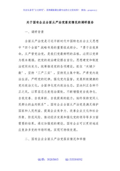 / 关于国有企业全面从严治党落实情况的调研报告