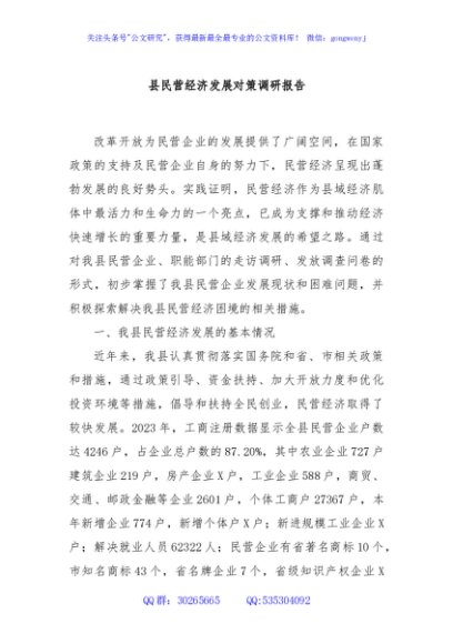 / 县民营经济发展对策调研报告