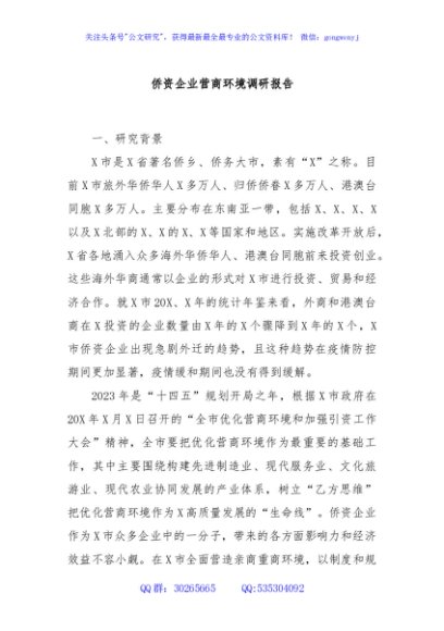 / 侨资企业营商环境调研报告