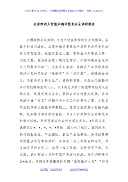 / 全面推动乡村振兴确保粮食安全调研报告