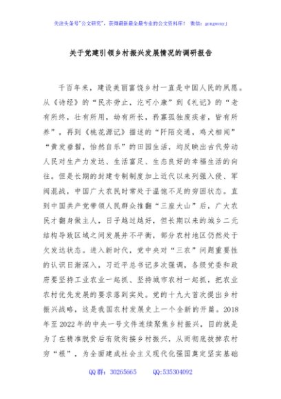 / 关于党建引领乡村振兴发展情况的调研报告