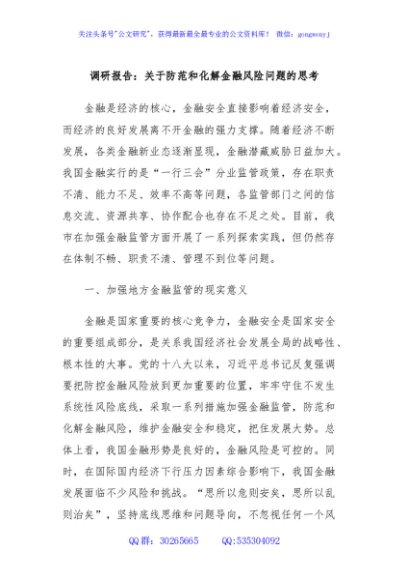 / 调研报告:关于防范和化解金融风险问题的思考