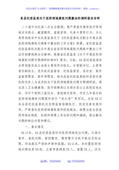 / 某县纪委监委关于医药领域腐败问题整治的调研报告材料