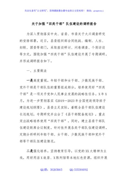 / 关于加强“四类干部”队伍建设的调研报告