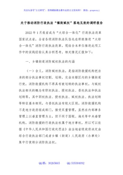 / 关于推动消防行政执法“镇街赋权”落地见效的调研报告