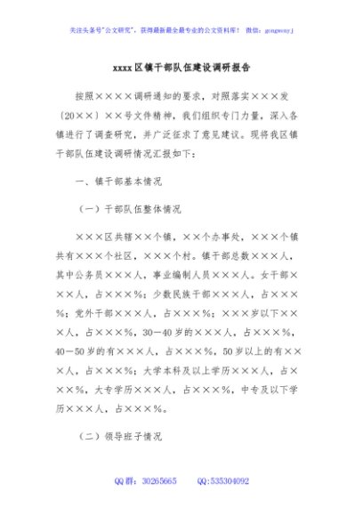 / xxxx区镇干部队伍建设调研报告