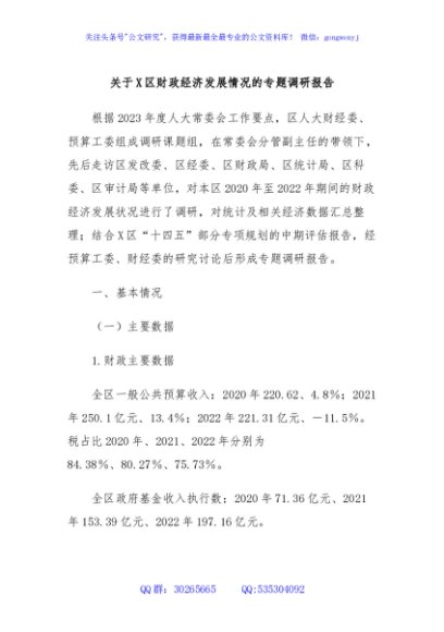 / 关于X区财政经济发展情况的专题调研报告
