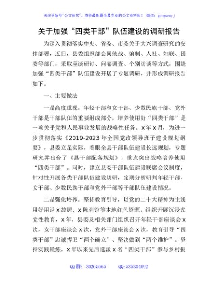 / 加强“四类干部”队伍建设的调研报告