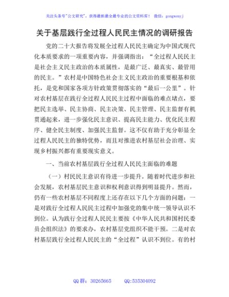 / 基层践行全过程人民民主情况的调研报告